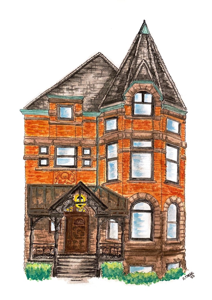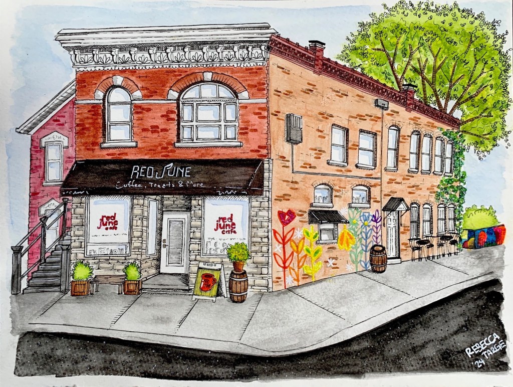Custom commissions are available for portraits, businesses, real estate, and illustrated renderings from photographs. Each commission is approached collaboratively, with care given to capturing personality, place, and story.